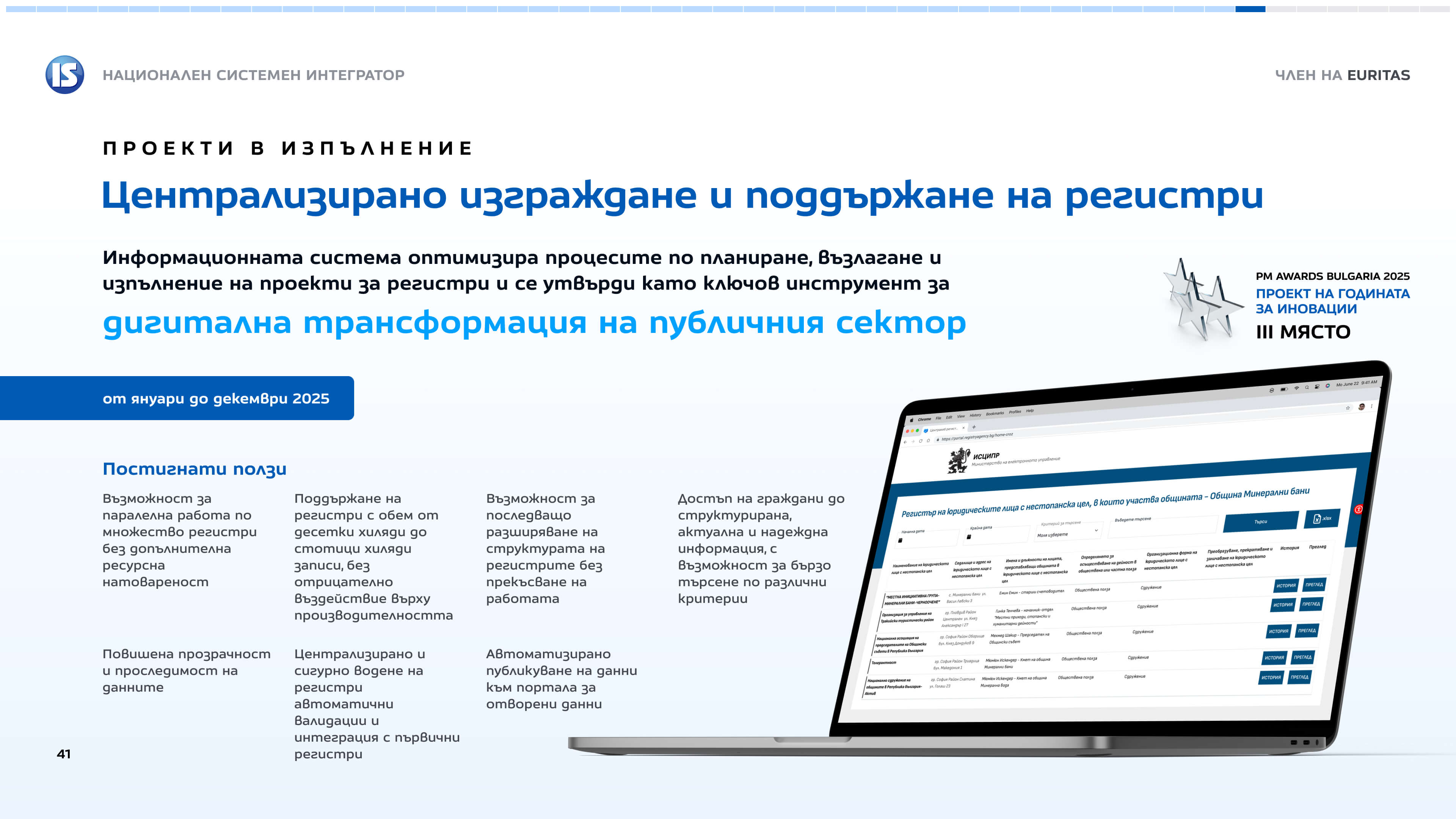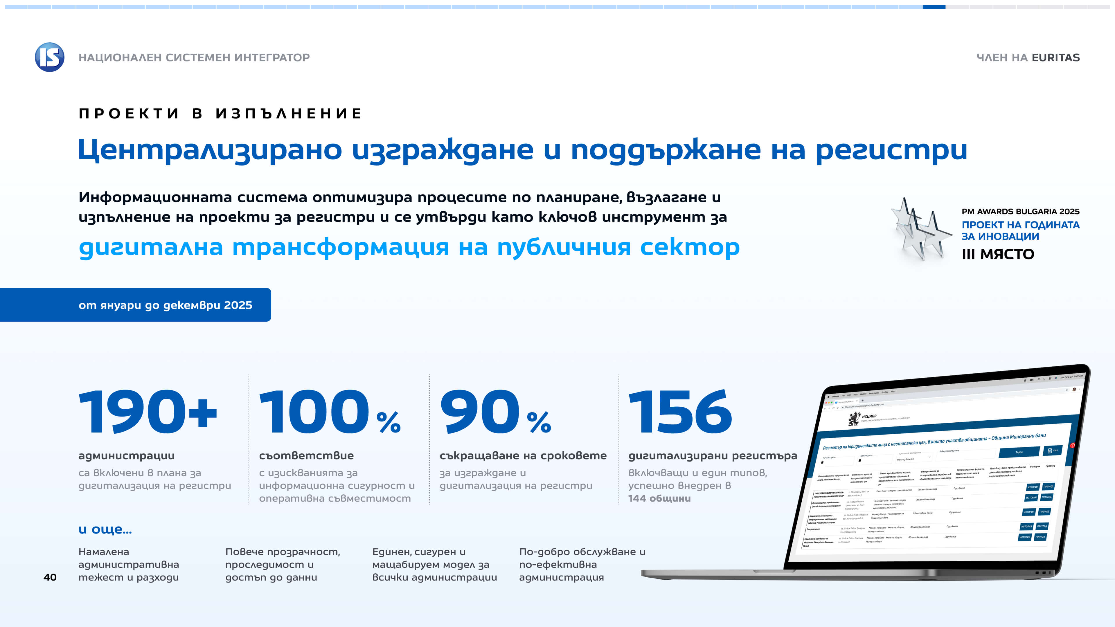Представяне на резултатите на системния интегратор към края на 2025 г. - финансови данни, проекти и ползи.